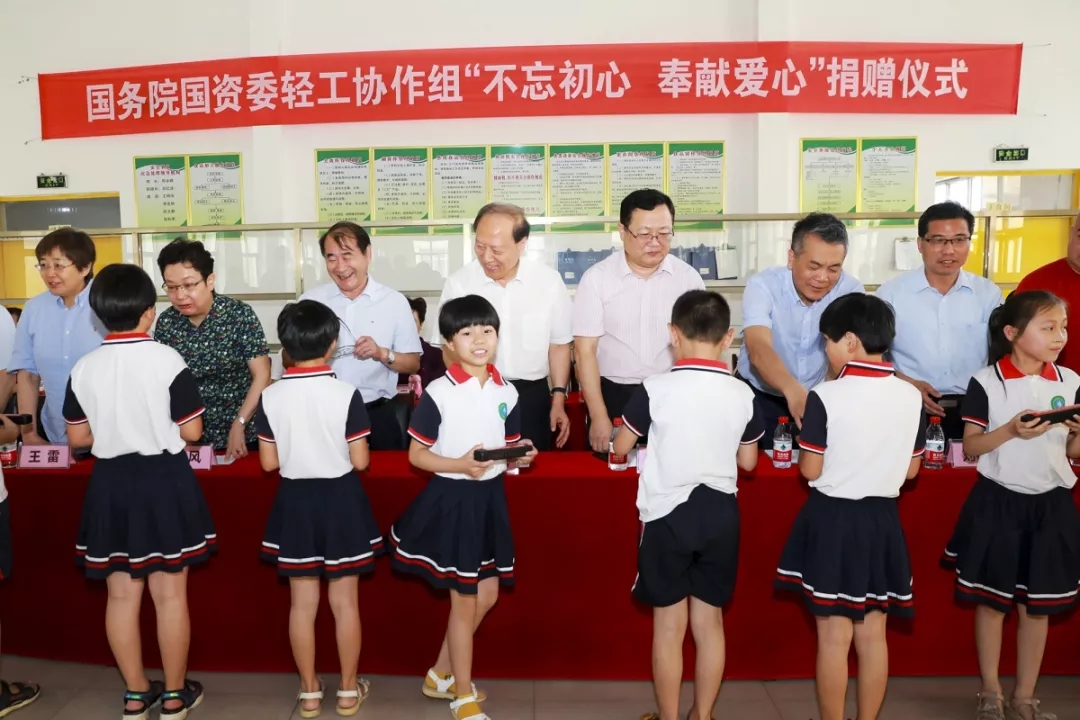 7月9日,国务院国资委轻工协作组扶贫捐赠仪式在河北省邢台市平乡县节固乡中心小学举行。 党委副书记王世成、纪委书记陶小年、兼职副会长姜风、国资委轻工机关服务中心主任王兵、国资委离退休干部局党委书记候孝国等参加捐赠仪式。捐赠仪式由平乡县副县长(国资委挂职干部)冯玮主持。