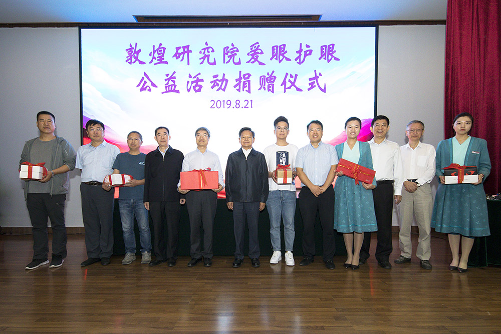 为贯彻落实习近平总书记重要讲话指示精神,推动“不忘初心、牢记使命”主题教育落地落实,在国资委、教育部等主管部门的关心支持下,8月21日,由 指导,中国眼镜协会主办的爱眼护眼公益活动捐赠仪式在敦煌研究院举行。中国眼镜行业20家企业和相关单位,向敦煌研究院一线科技人员和广大职工赠送价值120万元的太阳镜、老花镜和镜架镜片,现场为科研人员验光配镜。 会长张崇和, 秘书长、中国眼镜协会理事长杜同和,国资委协会党建局二级巡视员刘续浩,中国财贸轻纺烟草工会副主席王双清,中国教育发展基金会副理事长兼秘书长张中原,中国眼镜协会副理事长兼秘书长戴维平,敦煌研究院院长赵声良等出席捐赠仪式。