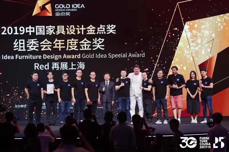 在当晚举行的“无愧芳华”庆典晚宴上,张崇和、徐祥楠等领导为2019中国家具设计金点奖获得者颁奖。