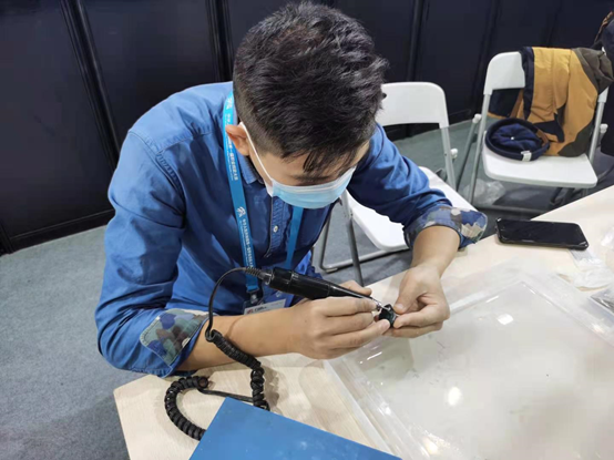 技能成果展以文字形式展现了 充分发挥资源优势,在职业技能培训、技能竞赛、技能鉴定等工作取得的成就。展台内,中国家具协会、中国焙烤食品糖制品工业协会、中国轻工珠宝首饰中心、上海工艺美术职业学院、天津现代职业技术学院、无锡工艺职业技术学院陶瓷学院等参展单位,也展现了培养职业技能人才等方面的工作成绩。各参展单位的技能人才现场展示了草编、木雕、玉石雕刻、瓷刻、紫砂陶刻、中华传统纹样、艺术烘焙等技艺,吸引了众多参观者驻足观看。