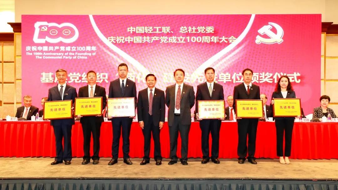 在全国上下喜迎建党百年的历史时刻,在全党深入开展党史学习教育的重要节点,6月29日,中国轻工联、总社党委在京召开庆祝中国共产党成立100周年大会,重温党的历史,总结“两化”经验,表彰先进典型,为“光荣在党50年”的老党员颁发纪念章,为新党员举行入党宣誓仪式。