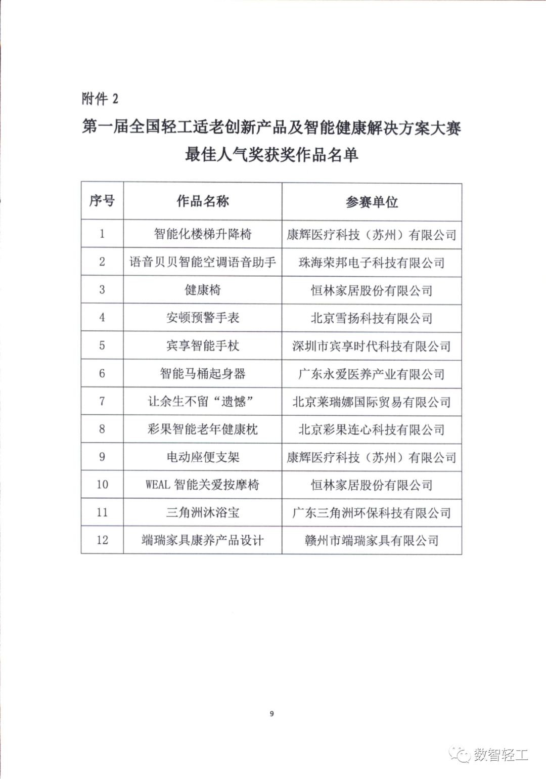 第一届全国轻工适老创新产品及解决方案大赛获奖作品公示