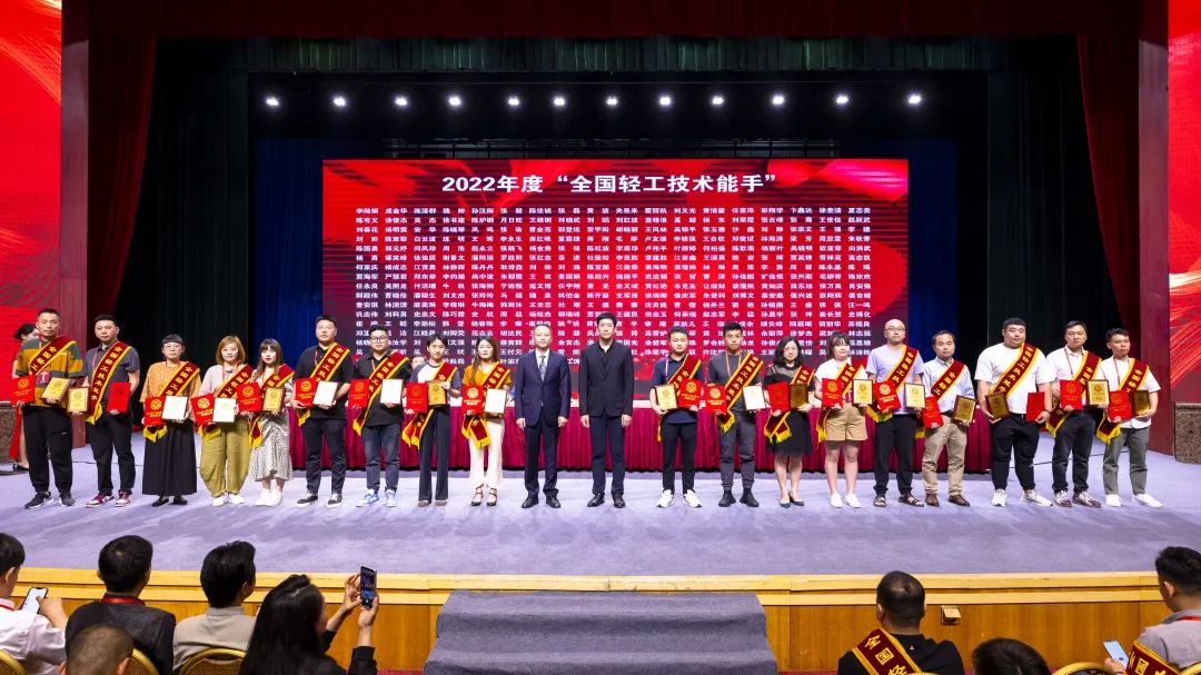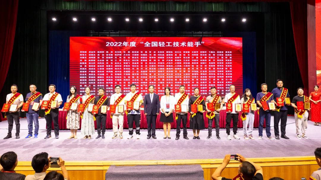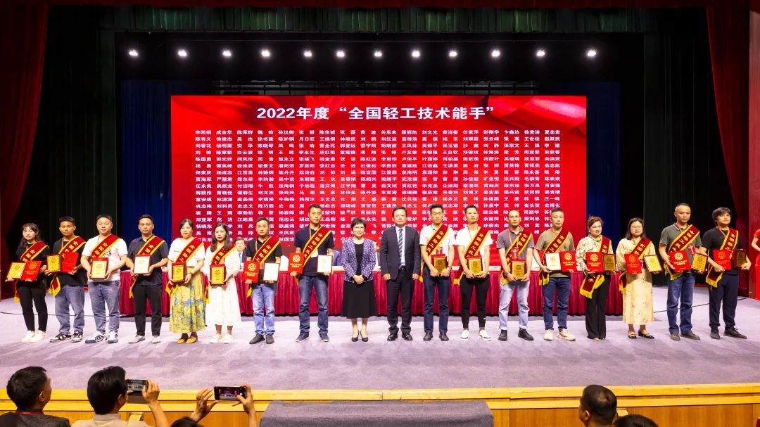 大会为2022年 “全国五一劳动奖章”获得者举行了颁奖仪式;为获得2022年“全国轻工技术能手”荣誉称号的优秀选手和全国轻工第二届互联网营销师获奖选手进行表彰。