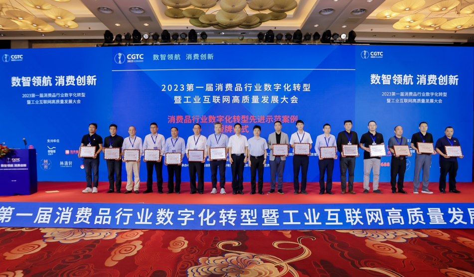 大会为2023年度消费品行业数字化转型先进示范案例和重点数字化标准参编单位颁发了牌证。