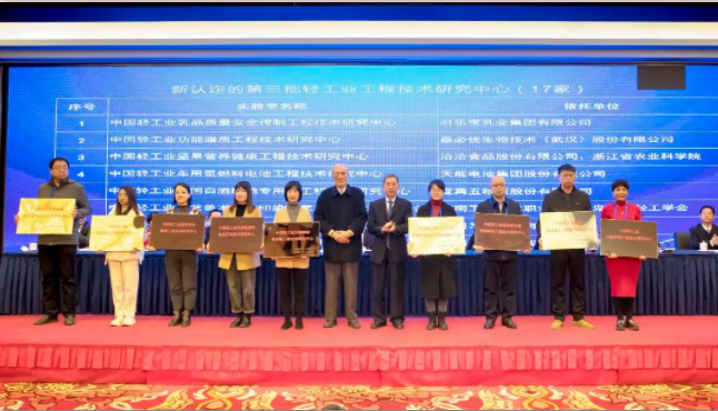 会议发布了《中国轻工业重点实验室和中国轻工业工程技术研究中心发展报告》《轻工业共性关键技术目录》《2022年度中国食品工业创新发展报告》;宣布了第三批中国轻工业科技创新平台认定名单和第一批中国轻工业重点实验室评估结果,与会领导为优秀的重点实验室颁发证书、为新认定的和复评通过的重点实验室及新认定的工程技术研究中心颁牌。
