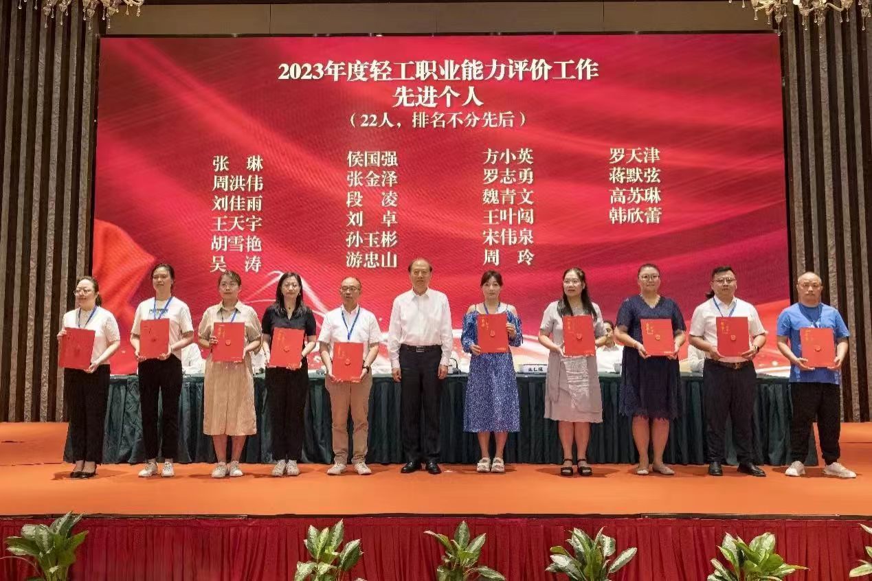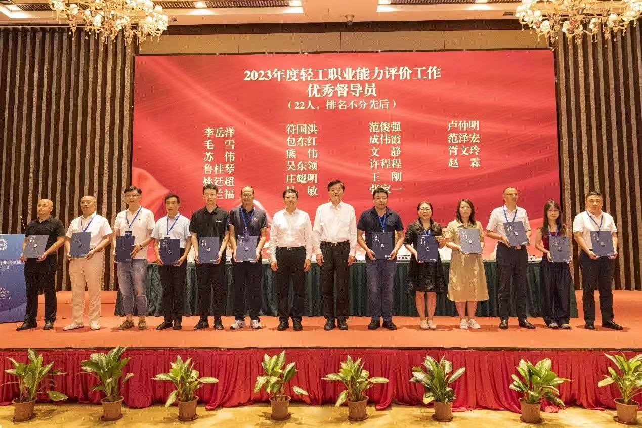 大会授予中国焙烤食品糖制品工业协会等22家单位“2023年度轻工职业能力评价工作先进单位”称号;授予中国陶瓷工业协会等3家单位“2021-2023年度轻工职业能力评价工作突出贡献单位”称号;授予张琳等22人“2023年度轻工职业能力评价工作先进个人”称号;授予李岳洋等22人“2023年度轻工职业能力评价优秀督导员”称号;授予刘橹等22人“2023年度轻工职业能力评价工作优秀考评员”称号。