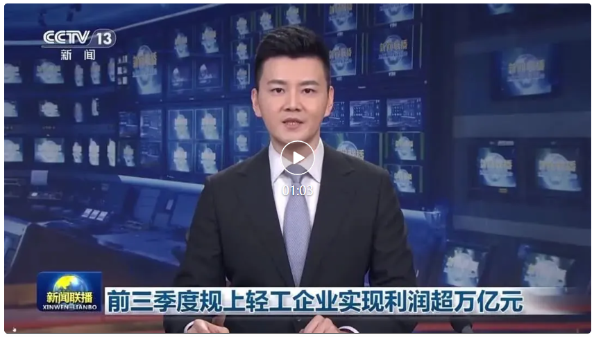 新闻联播:前三季度规上轻工企业实现利润超万亿元