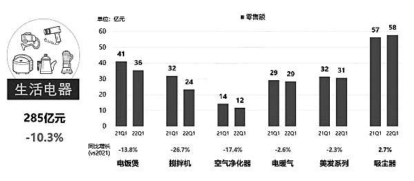 一季度生活电器主要品类规模及增长(零售额)