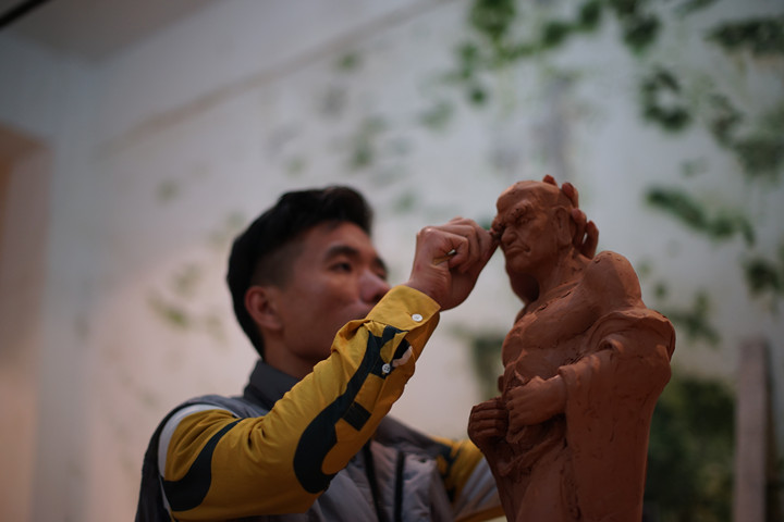 人物雕塑是青瓷制作里较难的技艺之一,先不说把名家名画人物塑造成型有多难,就是在创作上也要花费大把的时间。王军港却笑着说,“我的性格就是喜欢做别人没有做过的东西,就是要走别人没有走过的路。让名像从纸上走到龙泉青瓷里,我做出来了,就是1+1>2的效应,会让艺术品在瓷器界和书画界都具有收藏价值。”