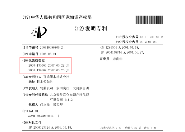 该专利共引用了2项日本专利申请作为优先权,即特願2007-135405和特願2007-139609。经过调查其法律状态后发现,这2件日本专利申请在日本并没有获得授权。
