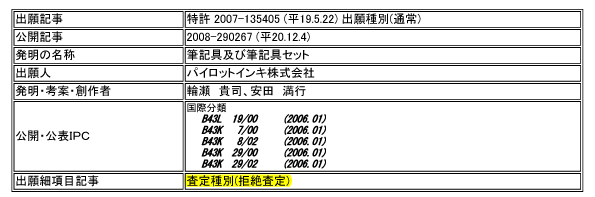 其中,特願2007-135405已被做出了驳回决定(拒絶査定):