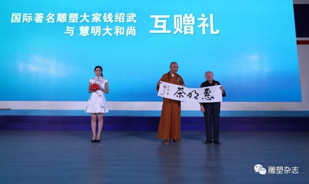 著名雕塑家钱绍武先生与慧明大和尚互赠礼