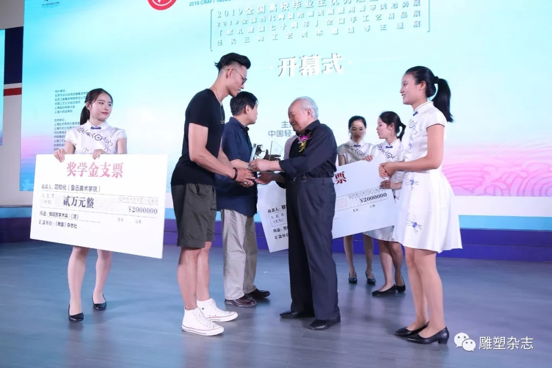 开幕当天“国之大匠成就奖”颁奖盛典中,颁发了《雕塑》杂志2018年度国之大匠成就奖,获得这一荣誉称号的是钱绍武先生、田世信先生、朱炳仁先生。同时也为2019年全国高校毕业生优秀雕塑作品展获得钱绍武学术奖、范伟民设计奖、朱炳仁艺术奖的毕业生颁奖。