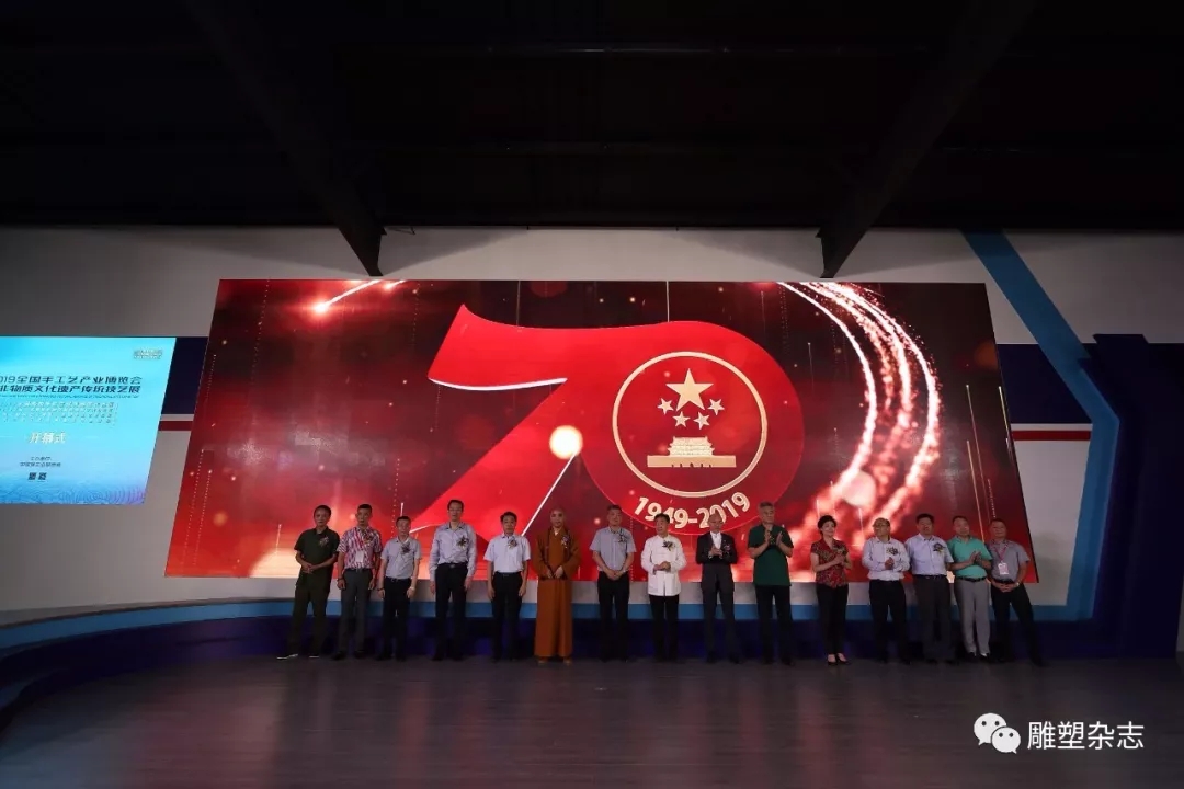 嘉宾集体为“2019 全国手工艺产业博览会暨非物质文化遗产传统技艺展”暨“2019全国高校毕业生优秀雕塑作品展”、“2019全国当代陶瓷绘画美展暨朔源审美趋势展”、“献礼建国七十周年”全国手工艺精品展、泛长三角工艺美术邀请展启幕