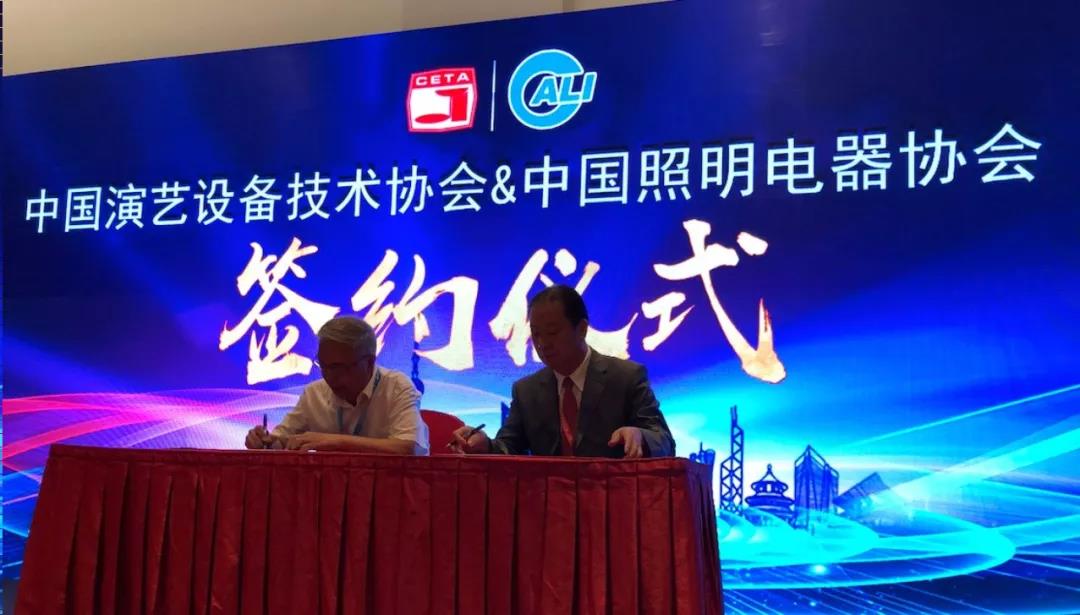 中国照明电器协会陈燕生理事长和中国演艺设备技术协会朱新村理事长还分别代表两协会进行了战略合作签约仪式,就此见证了两行业间的跨界融合。