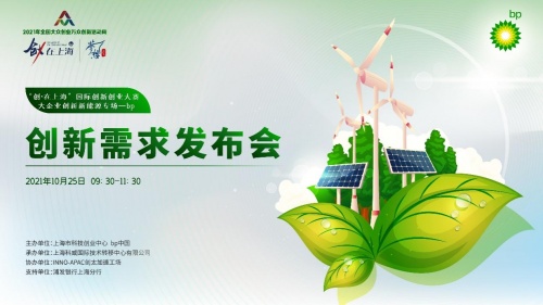 2021年10 月25日上午,作为全国万众创新大众创业活动周上海分会场的主题活动、“创•在上海”国际创新创业大赛的服务活动之一,由上海市科技创业中心、bp合主办,上海科威国际技术转移中心有限公司承办,INNO-APAC创太加速工场协办的“大企业创新新能源专场-bp创新需求发布会”活动在杨浦滨江毛麻仓库顺利举办。本次活动还获得浦发银行上海分行的大力支持,活动线下、线上同时开展,旨在通过这一活动交流平台促进“以大带小”、推动产业链上下游企业聚集动发展。