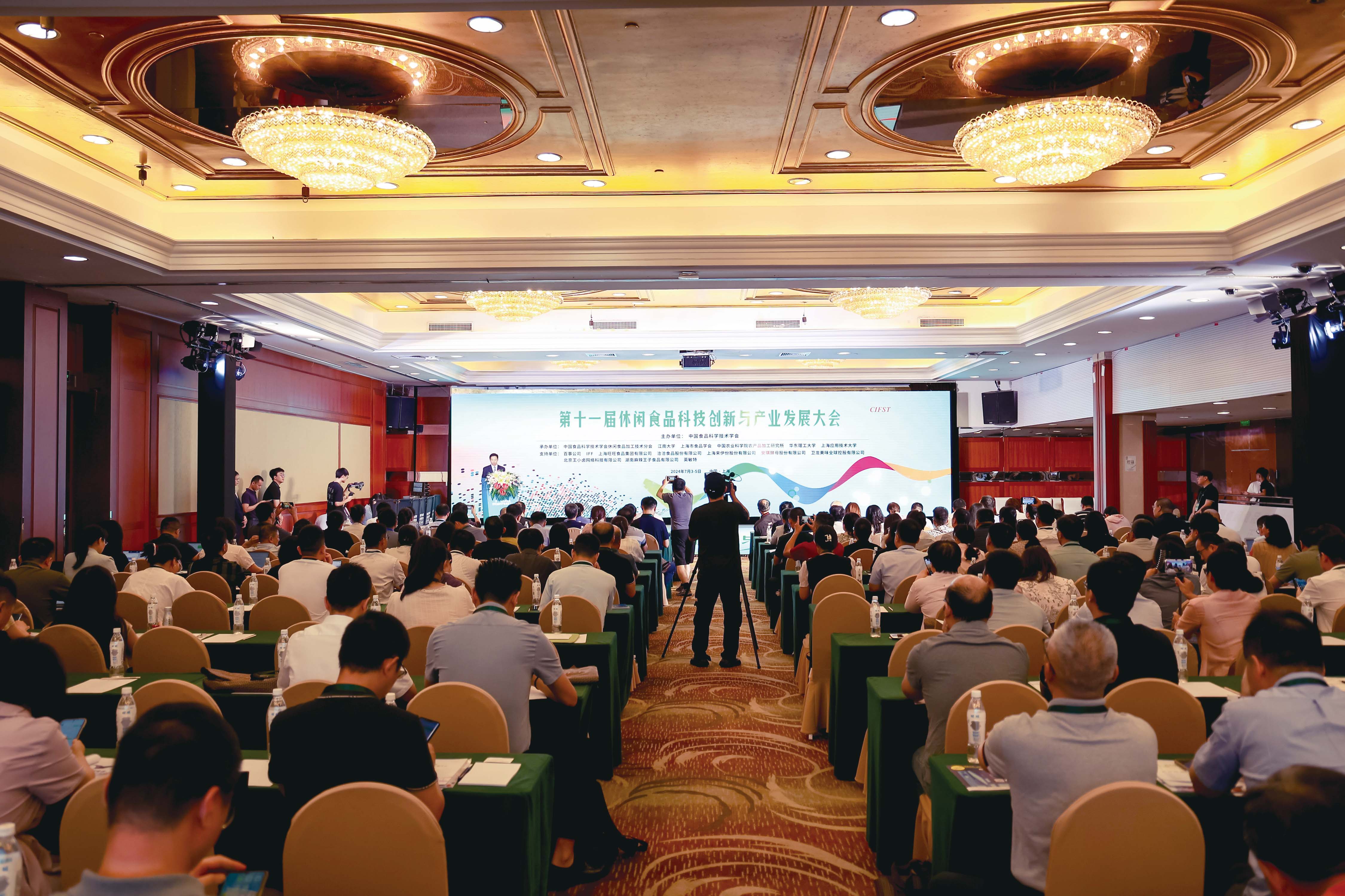 科技创新是产业发展的“定海神针”,是培育新质生产力的核心。习近平总书记在近日召开的全国科技大会上明确指出要“坚持创新引领发展,树牢抓创新就是抓发展、谋创新就是谋未来的理念,以科技创新引领高质量发展、保障高水平安全”。休闲食品行业作为食品工业创新最为活跃的板块之一,具有覆盖人群广、消费场景丰富、产品品类多、消费频次高等特点。随着消费升级和人们健康意识的提升,休闲食品在消费者生活中的角色正悄然发生改变——从曾经人们口中的“零食”到可与正餐比肩的“第四餐”,既有颜值又有品质的休闲食品为消费者提供了重要的营养价值和情绪价值。随着休闲食品外延的拓展,行业从千亿规模发展到现在的万亿市场,如何以创新理念和实用技术驱动休闲食品产业的变革?未来十年,休闲食品产业的创新趋势有哪些?为凝聚行业智慧,明晰中国休闲食品发展的路径,破解行业面临的问题和难题,7月3—5日,第十一届休闲食品科技创新与产业发展大会在上海召开。此次大会以“科技创新引领产业发展”为主题,由中国食品科学技术学会主办,中国食品科学技术学会休闲食品加工技术分会、江南大学、上海市食品学会、中国农业科学院农产品加工研究所、华东理工大学、上海应用技术大学共同承办。来自江南大学、浙江大学、中国海洋大学、中国疾病预防控制中心营养与健康所等科研院所及高校的院士专家以及百事、伊利、IFF、旺旺、来伊份、安琪、洽洽、王小卤、安琪、麻辣王子、好想你、卫龙等国内外知名休闲食品企业及相关配套企业的代表共计230余人参会。中国食品科学技术学会休闲食品加工技术分会副主任委员兼秘书长、中国农业科学院果蔬加工制造与营养健康创新团队首席科学家毕金峰主持大会开幕式。