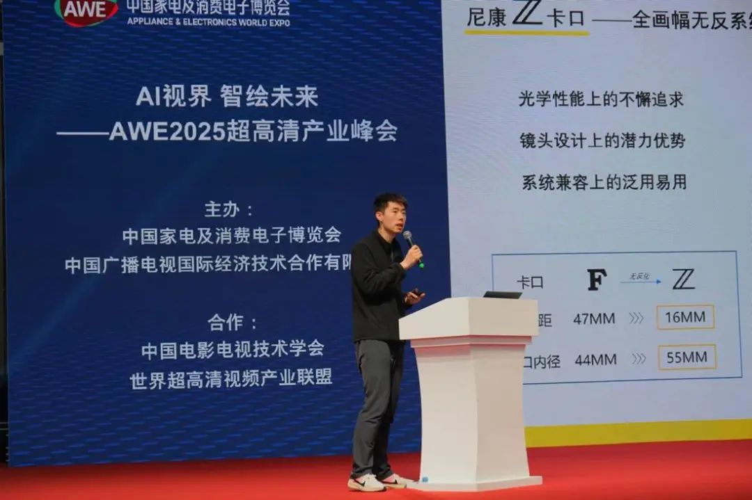 尼康映像仪器销售(中国)有限公司专业市场部主管王昶则介绍了尼康在视频时代的相机技术转型和双栖品牌策略,重塑移动影像生产力工具边界。