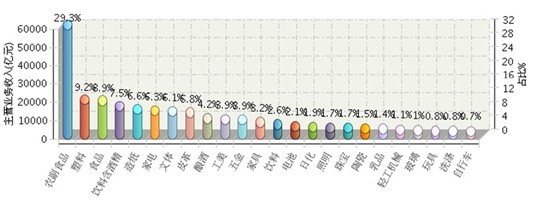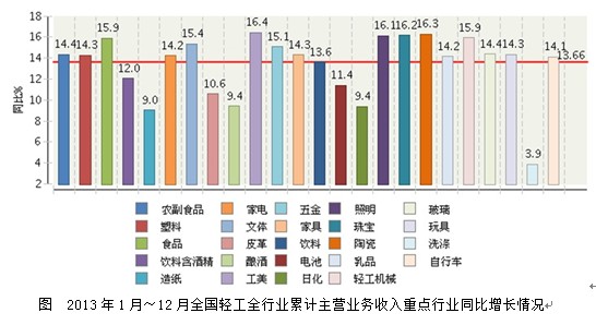 2013年,食品制造行业累计完成主营业务收入占轻工全行业收入比重的8.94%,位居行业第三,收入增速15.9%,超过