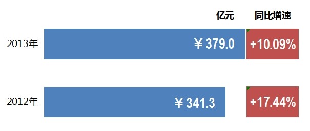 2013年1月~12月,全国轻工全行业累计完成利润总额同比增长14.61%。其中,全国日化行业累计完成利润总额 同比增长10.09%,低于轻工平均水平,增速较2012年下降7.35个百分点。