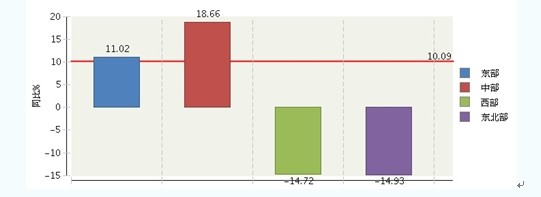 图 2013年全国日化行业累计利润总额地区同比增长情况