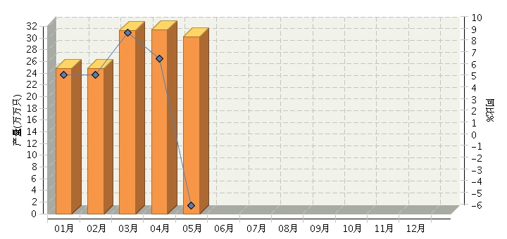 根据国家统计局公布数据,2014年1~5月,全国原电池及原电池组(折R20标准只)行业累计完成产量145.43万万只,同比增长3.53%。其中: 5月份完成产量30.19万万只,同比增长-5.29%。2014年全国原电池及原电池组行业月度产量及同比如下图所示。