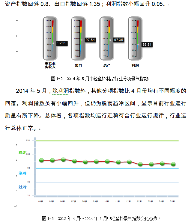 2014年5月份中轻塑料景气指数回落
