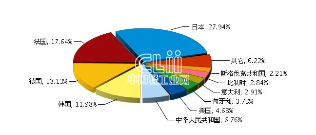 2014年1~6月,全国白炽灯泡行业完成累计进口额同比增长8.19%。进口国家排在前三位的依次是日本、法国和德国。其中:来自日本累计进口额占全部白炽灯进口额的27.94%,同比增长15.05%;法国增速为22.92%;德国增速为13.75%。