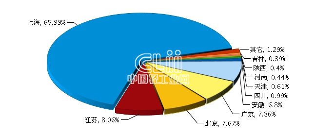 从分省市对德国进口情况看,上海、江苏、北京是主要进口区域,其中上海的进口额占到了全国的65.99%。