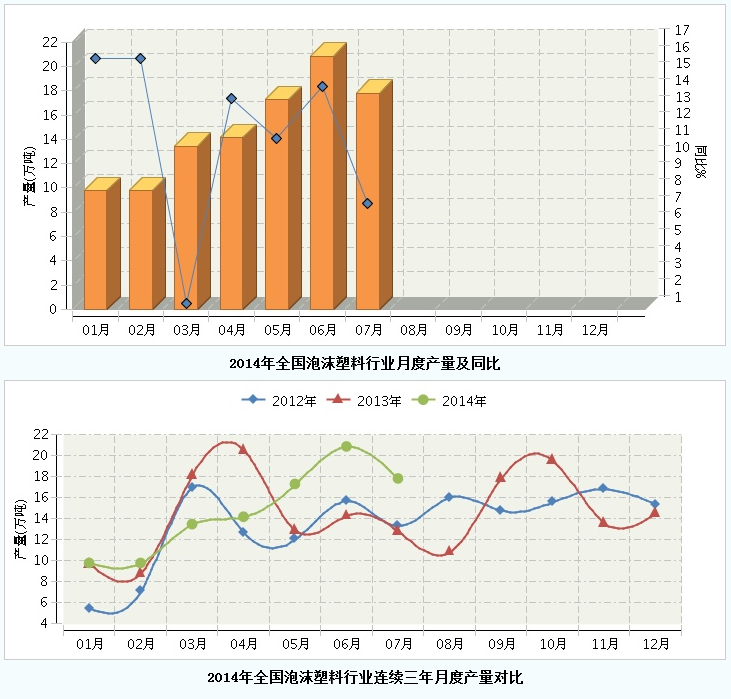 - 2014年7月泡沫塑料产量增速下降2014/8/21 9:07:56