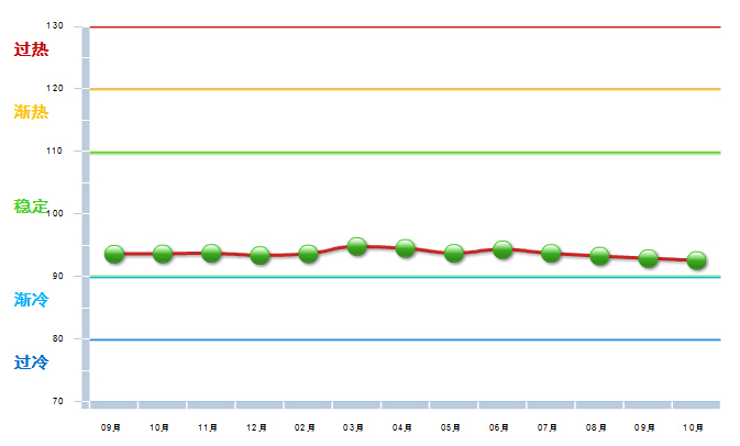 图3 2013.9—2014.10皮革行业景气指数变化态势