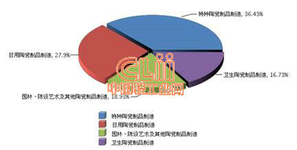 图4 2014年1~11月全国陶瓷行业累计主营业务收入行业小类占比情况