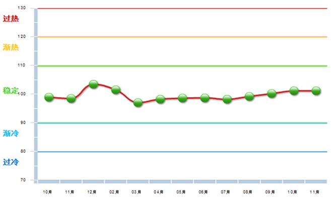 2014年11月自行车行业景气指数100.16