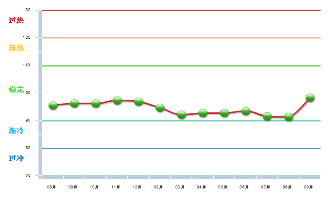 图4 2013.8----2014.9月工艺美术行业利润景气指数变化态势