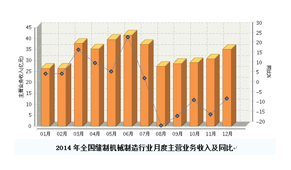 2014年全国缝制机械制造行业主营业务收入月度走势