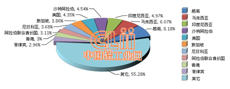 图1 2014年全国陶瓷砖累计出口额贸易国占比情况