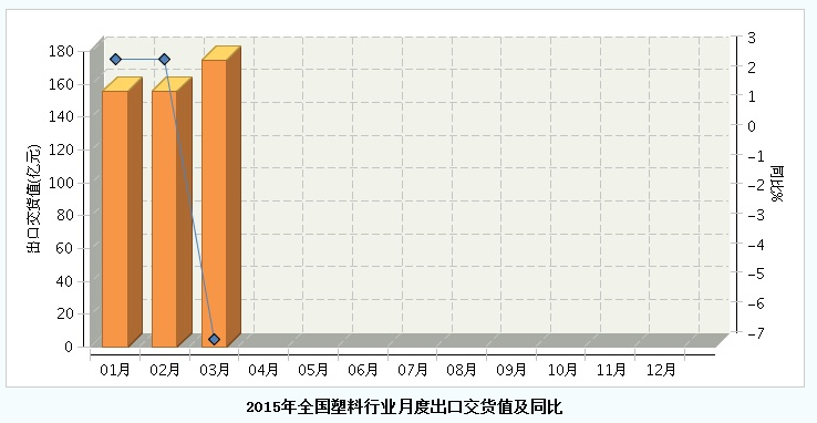 中国轻工业经济运行及预测预警系统监测显示:2015年3月份塑料制品出口交货值同比下降6.76%。