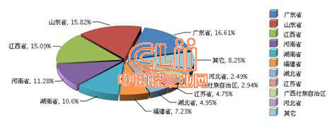 据国家统计局数据显示,2015年1~3月全国陶瓷行业规模以上企业累计完成主营业务收入前三位地区是广东、山东、江西,其中:广东累计完成主营业务收入同比增长9.92%,占16.61%;山东累计同比增长3.8%,占15.82%;江西累计同比增长9.63%,占15.09%。