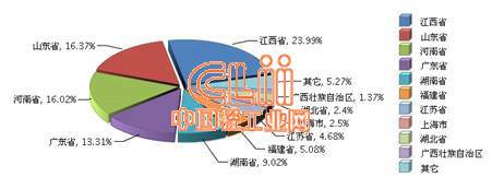 据国家统计局数据显示,2015年1~3月全国陶瓷行业累计完成利润总额前三位的地区依次是江西、山东、河南。其中江西稳居首位,累计同比增长12.67%),占23.99%;山东累计同比下降0.25%,占16.37%;河南累计同比增长3.88%,占16.02%。详见图3-2。