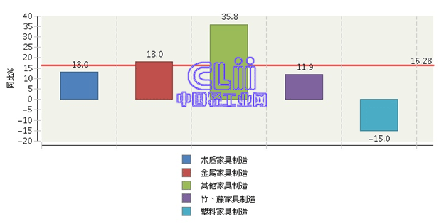 图5 2014年1~11月家具子行业规模以上企业累计利润总额增速情况