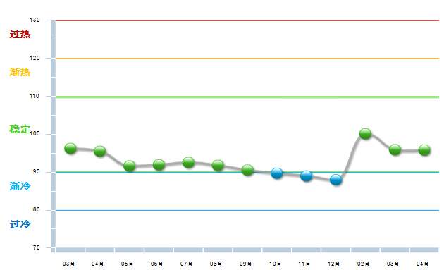 2015年2月五金行业利润景气指数出现了快速的提升,一下提高到“稳定”区域的中等水平,3月未能延续这一提升势,出现了一定的下滑,4月份趋于平稳,指数基本与上月持平。2015年以来,五金行业利润指数整体相对于2014年来说,保持了较高水平,基本处于2014年最高值水平(如图)。