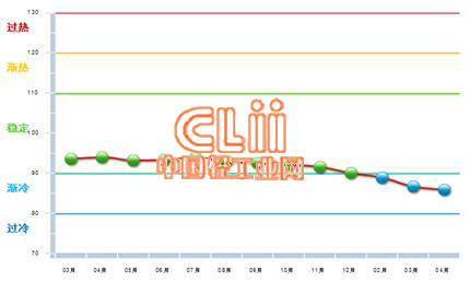 从一年走势情况看,自2014年8月以来中轻陶瓷景气指数呈逐月下降趋势,至2015年4月,指数已连续3个月在渐冷区间下行,参见图1-3。