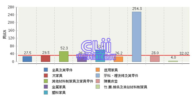 根据海关总署数据显示,2015年1~2月,我国家具累计出口值在轻工主要商品出口中排名上升至第二位,占10.51%;家具出口值累计同比增长32.02%,比轻工主要商品的平均增长水平低了11.78个百分点。
