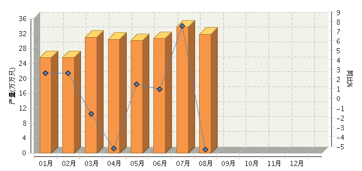 根据国家统计局公布数据,2015年1~8月,全国原电池及原电池组(折R20标准只)行业累计完成产量同比增长0.60%。其中:8月份完成产量同比增长-4.64%。2015年全国原电池及原电池组行业月度产量及同比如下图所示。