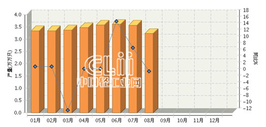 2015年1~8月,全国白炽灯泡累计产量27.59亿只,同比增长2.28%。其中: 8月份完成产量3.23亿只,同比增长0.64%。