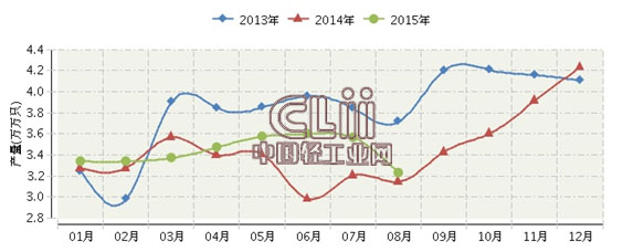 2015年全国白炽灯泡行业连续三年月度产量对比