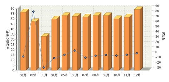2015年全国塑料行业月度出口额及同比