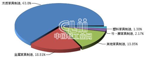 图4 2015年1~8月家具子行业规模以上企业累计主营业务收入占比情况