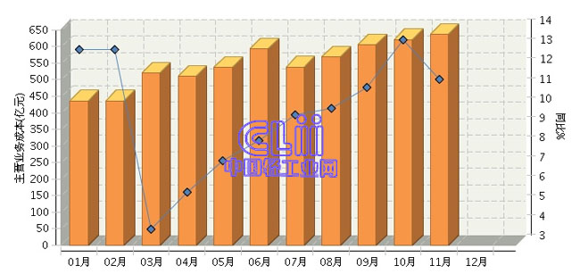 根据国家统计局公布数据:2015年1~11月,全国家具行业累计完成主营业务成本6005.02亿元,同比增长9.65%。其中:10月份主营业务成本同比增长11.48%。