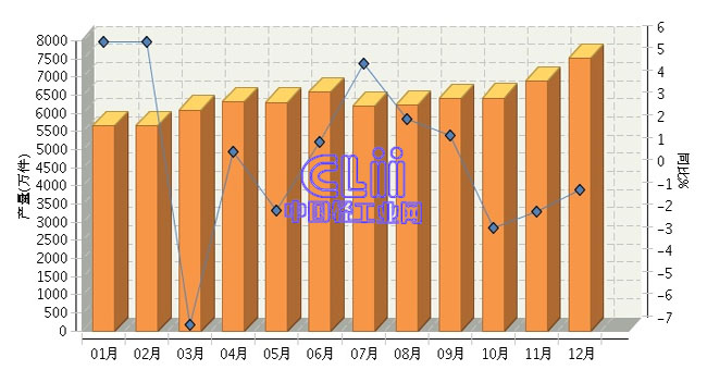 全国家具行业连续三年月度产量对比